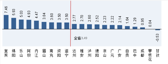 20个市州综合指数较上年提高,比上年增加5个。其中,9个市州增幅高于全省平均水平,宜宾以7.46个百分点居增长首位。