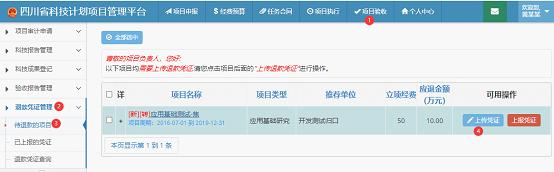 现将各有关单位应退回的四川省科技计划项目专项资金情况予以通告。请各有关单位见此通告后,联系相关处室,办理退回财政专项资金事宜,并于11月7日前将退款凭证上传至四川省科技信息管理系统(见下图)。