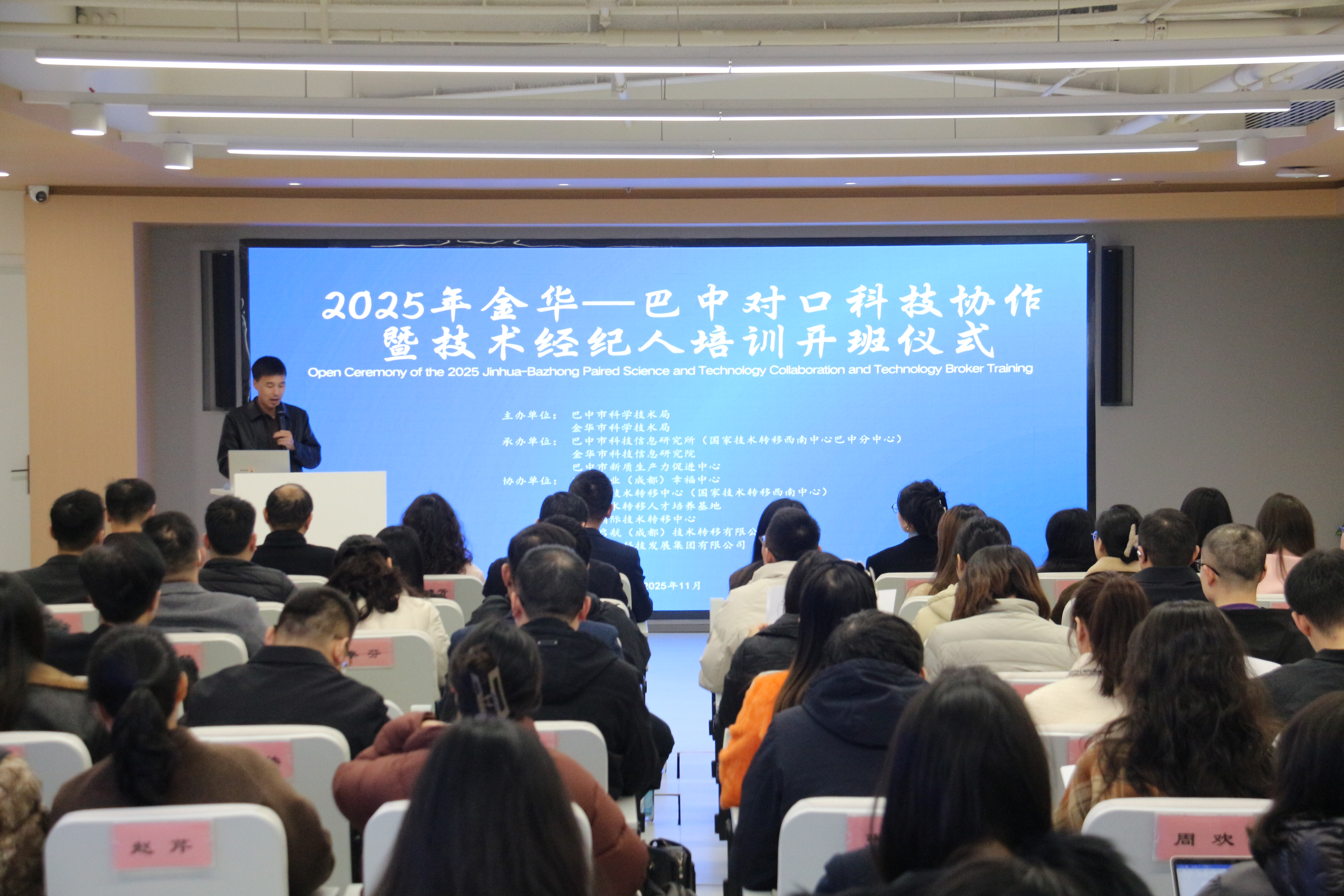 近日,由巴中市科学技术局、金华市科学技术局联合主办,巴中市科技信息研究所、金华市科技信息研究院、巴中企业(成都)幸福中心等共同承办的“2025年巴中-金华对口科技协作暨技术经纪人培训”在天府新区举办。